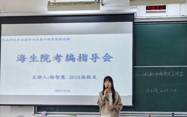 9月14日,为进一步强化师范生专业技能,海生学院员工会再度发力,特邀2018届优秀员工、龙岗中学团委副书记、中学正一级教师杨智慧返校,为同学们带来一场高水平师范技能培训交流会。公司党总支副书记、关工委副主任李霞及相关教师共同参与,活动现场座无虚席、互动热烈。杨智慧老师结合一线教学与考编实战经验,从课堂设计、互动技巧到面试礼仪等多维度展开深度剖析,并承诺分享优质备考资料,为学弟学妹持续提供精准帮助。